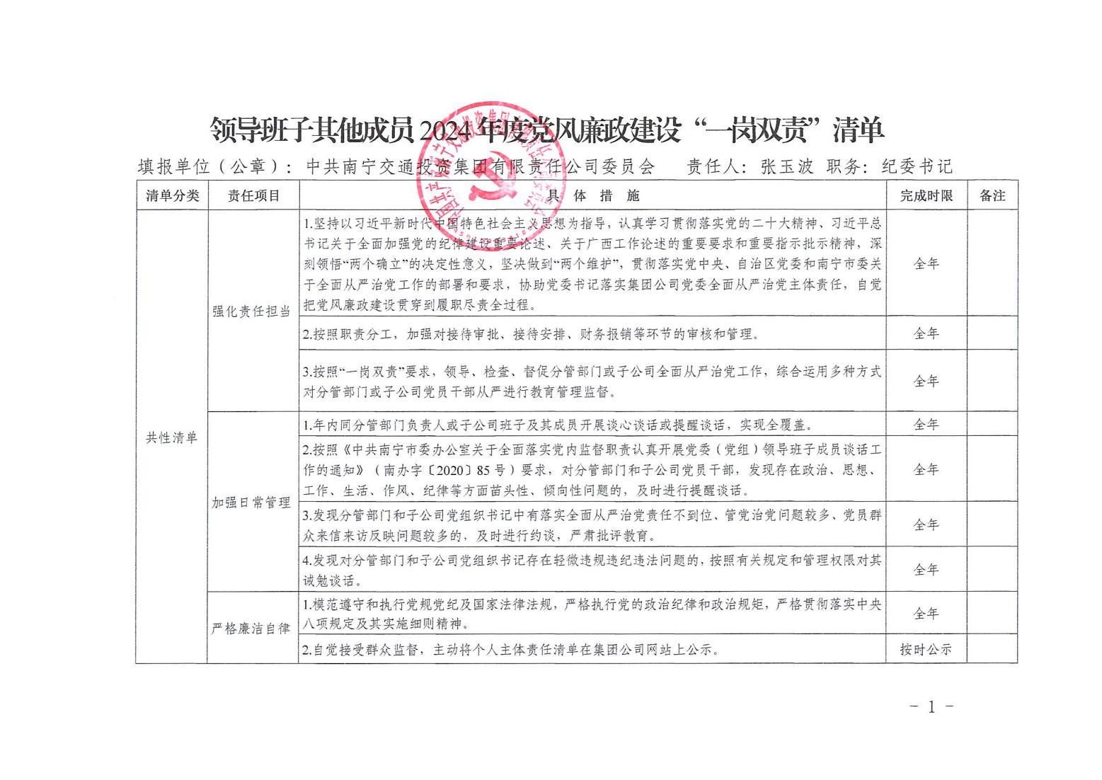 領(lǐng)導(dǎo)班子其他成員2024年度黨風(fēng)廉政建設(shè)“一崗雙責(zé)”清單(二)