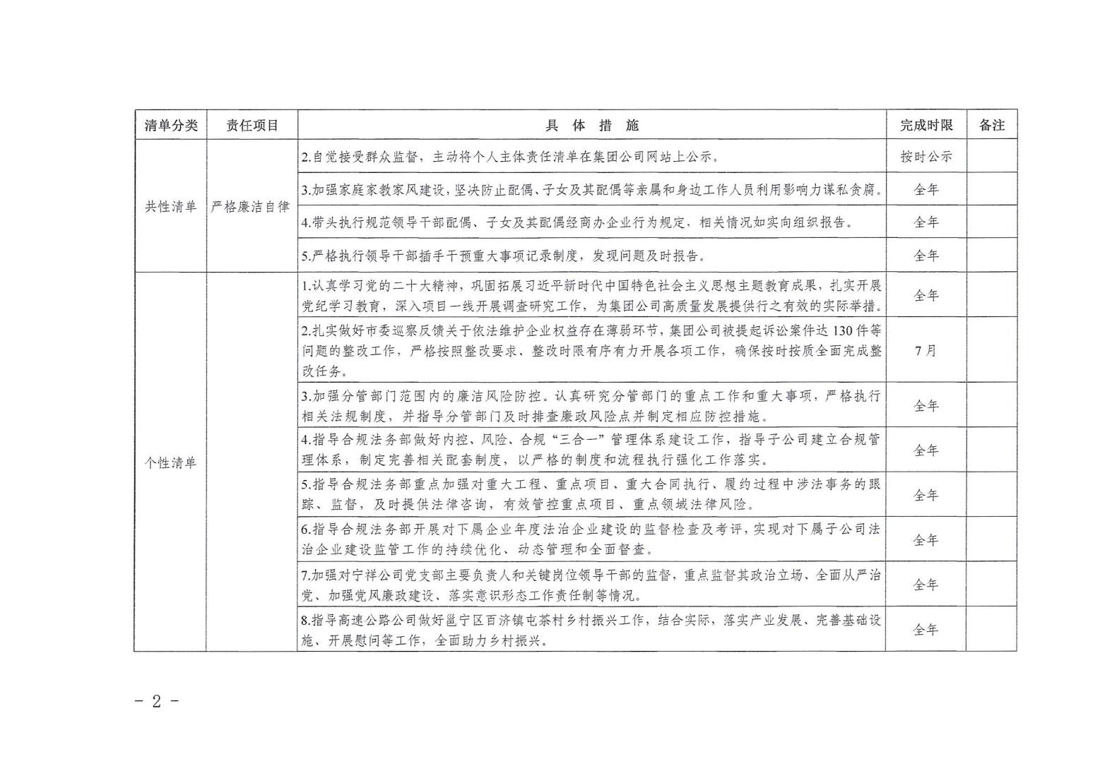 領導班子其他成員2024年度黨風廉政建設“一崗雙責”清單(四)