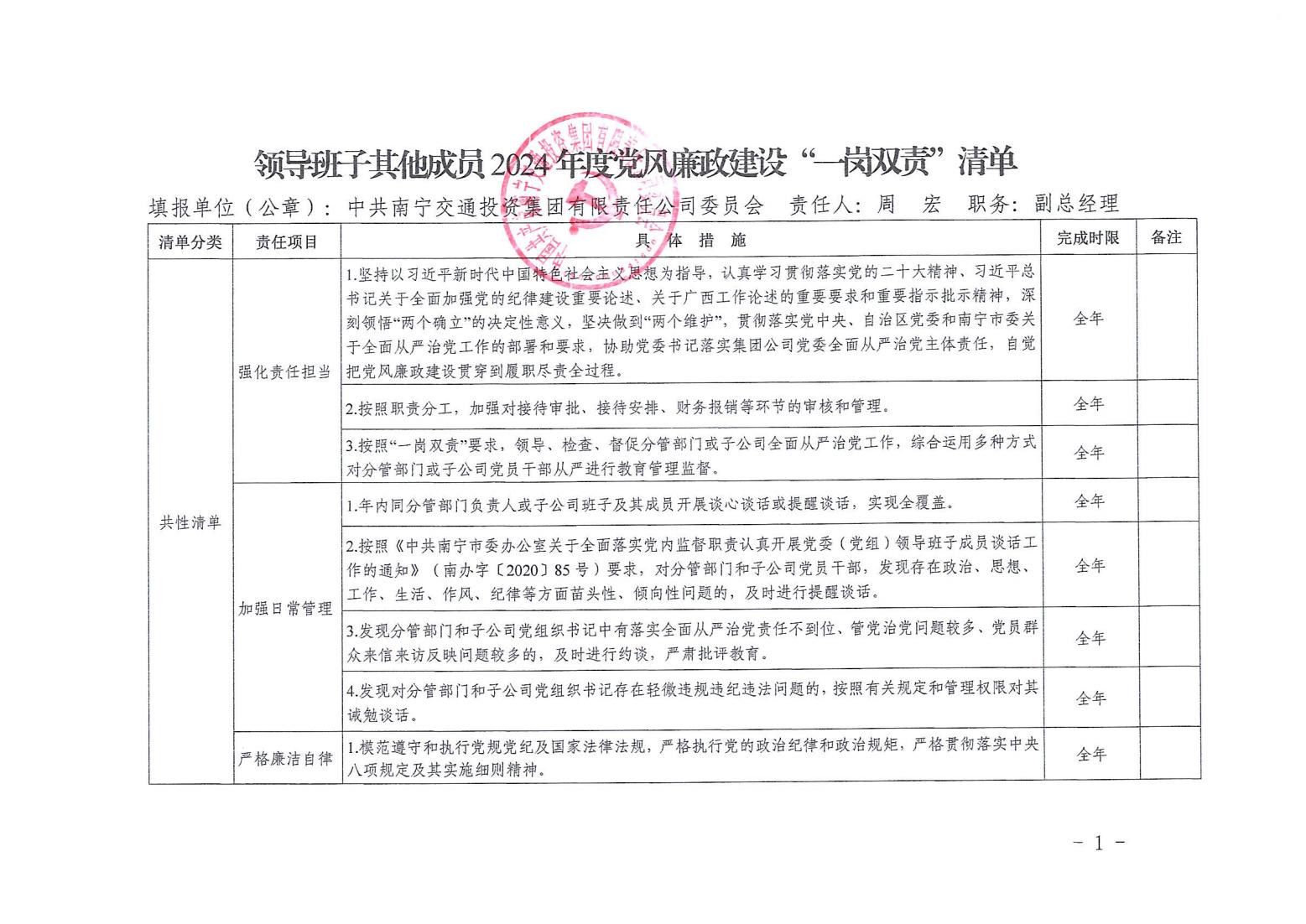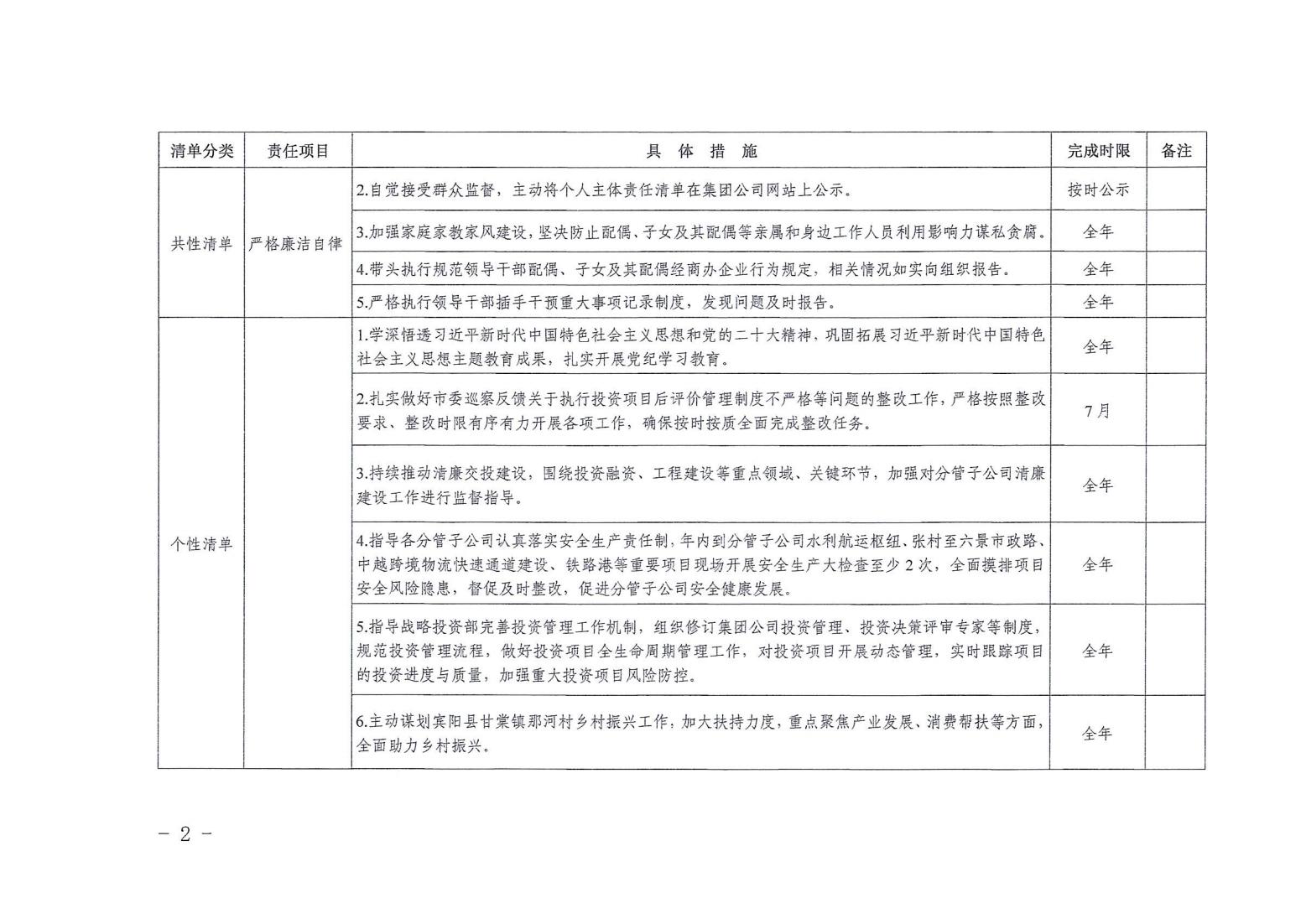 領導班子其他成員2024年度黨風廉政建設“一崗雙責”清單(六)