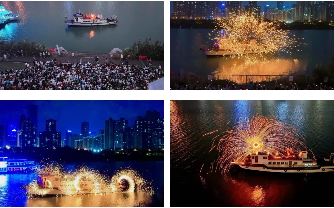 假期期間,南寧旅發(fā)公司在孔廟旅游碼頭為市民游客們獻(xiàn)上這一幕“火樹銀花一朝落,萬點星辰漫天散”的美景。