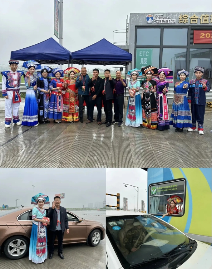 在六賓高速賓陽南收費站,六賓高速公司的志愿者們身穿民族特色服裝,化身高速公路上的“阿哥”“阿妹”,在提供出行服務(wù)的同時,為過往司乘人員送上了滿滿的祝福以及具有民族特色的繡球、香囊,形成收費站上一道靚麗的風景線。