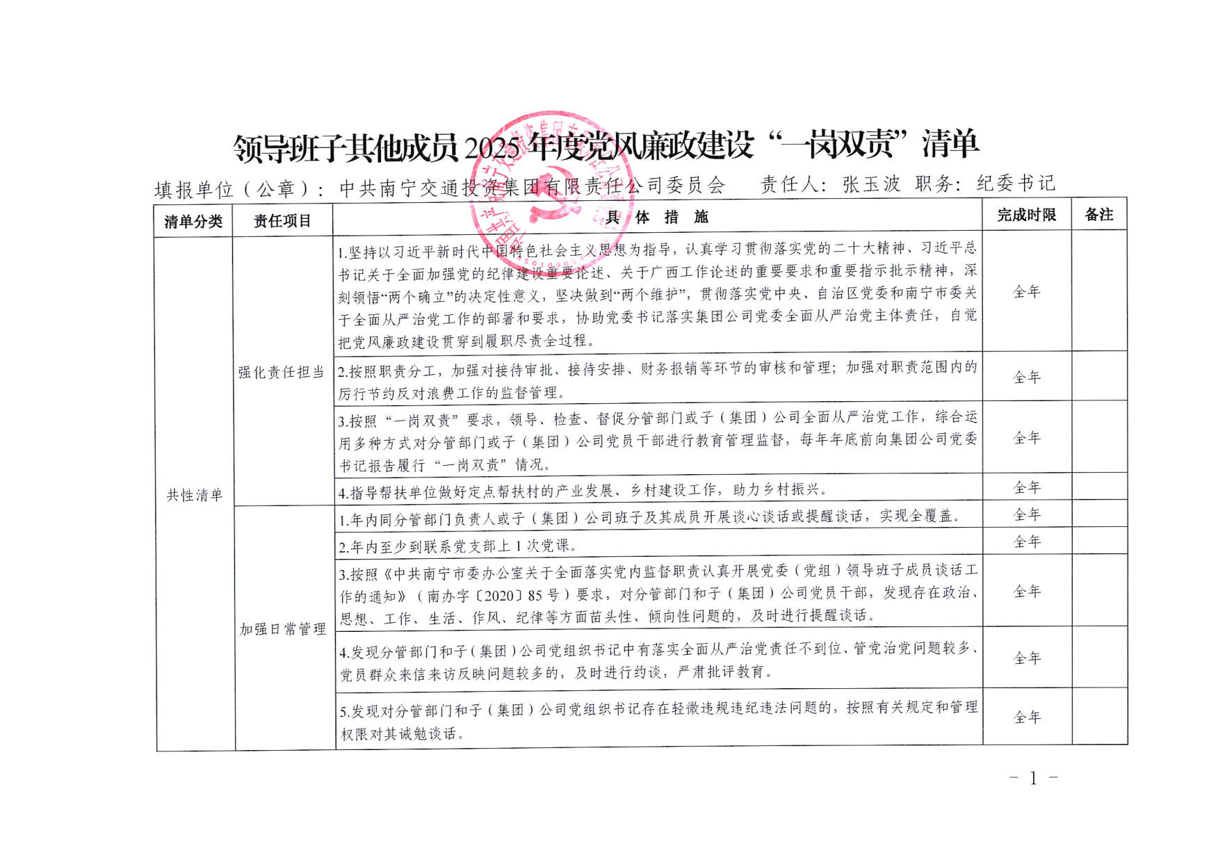 南寧交投集團領(lǐng)導(dǎo)班子其他成員2025年度黨風(fēng)廉政建設(shè)“一崗雙責(zé)”清單(二)
