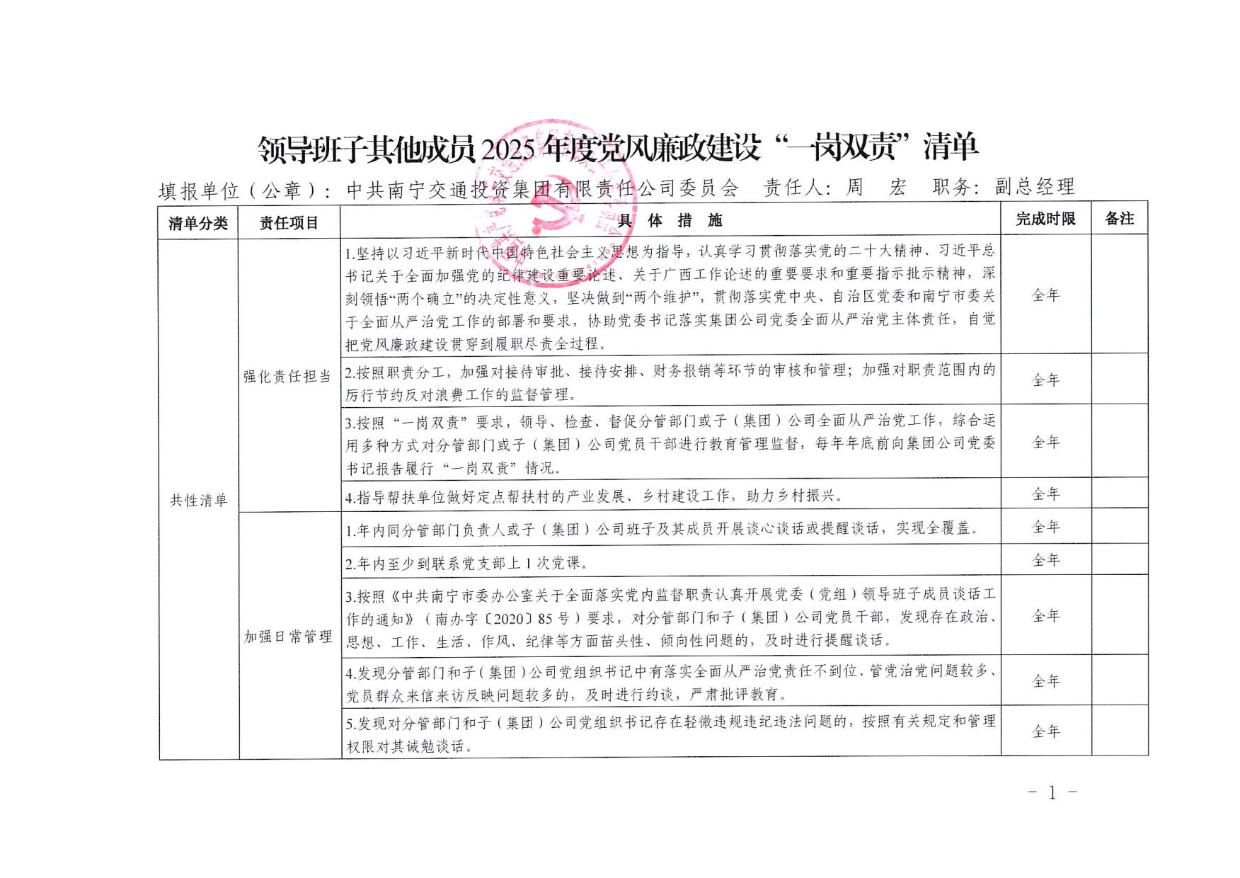 南寧交投集團(tuán)領(lǐng)導(dǎo)班子其他成員2025年度黨風(fēng)廉政建設(shè)“一崗雙責(zé)”清單(六)