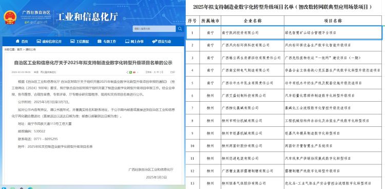 南寧礦業(yè)集團“綠色智慧礦山綜合管理平臺”成功入選自治區(qū)工業(yè)和信息化廳2025年支持制造業(yè)數(shù)字化轉(zhuǎn)型升級項目