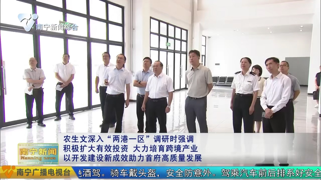 7月8日,自治區(qū)黨委常委、市委書記農(nóng)生文到“兩港一區(qū)”調(diào)研開發(fā)建設(shè)情況,強(qiáng)調(diào)要深入貫徹落實習(xí)近平總書記關(guān)于對外開放的重要論述和關(guān)于廣西工作論述的重要要求,進(jìn)一步樹牢開放發(fā)展理念,堅持貿(mào)易先行、貿(mào)工結(jié)合、以貿(mào)促工,充分發(fā)揮空港、鐵路港、公路港協(xié)同聯(lián)動和綜合保稅區(qū)政策優(yōu)勢,積極擴(kuò)大有效投資,暢通跨境物流通道,大力培育跨境產(chǎn)業(yè),不斷開創(chuàng)“兩港一區(qū)”開發(fā)建設(shè)新局面,為加快建設(shè)面向東盟開放合作的國際化大都市注入強(qiáng)勁動力。